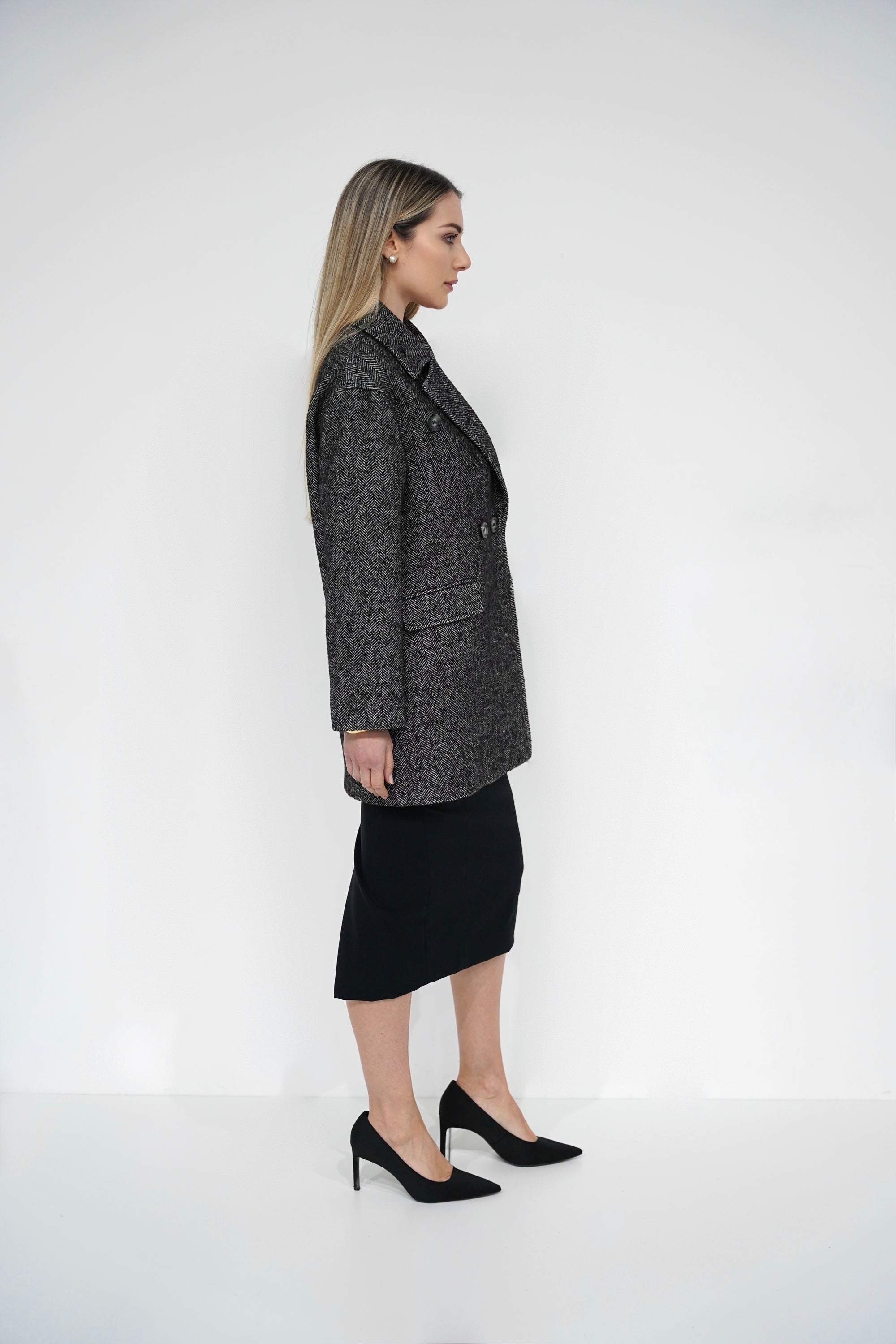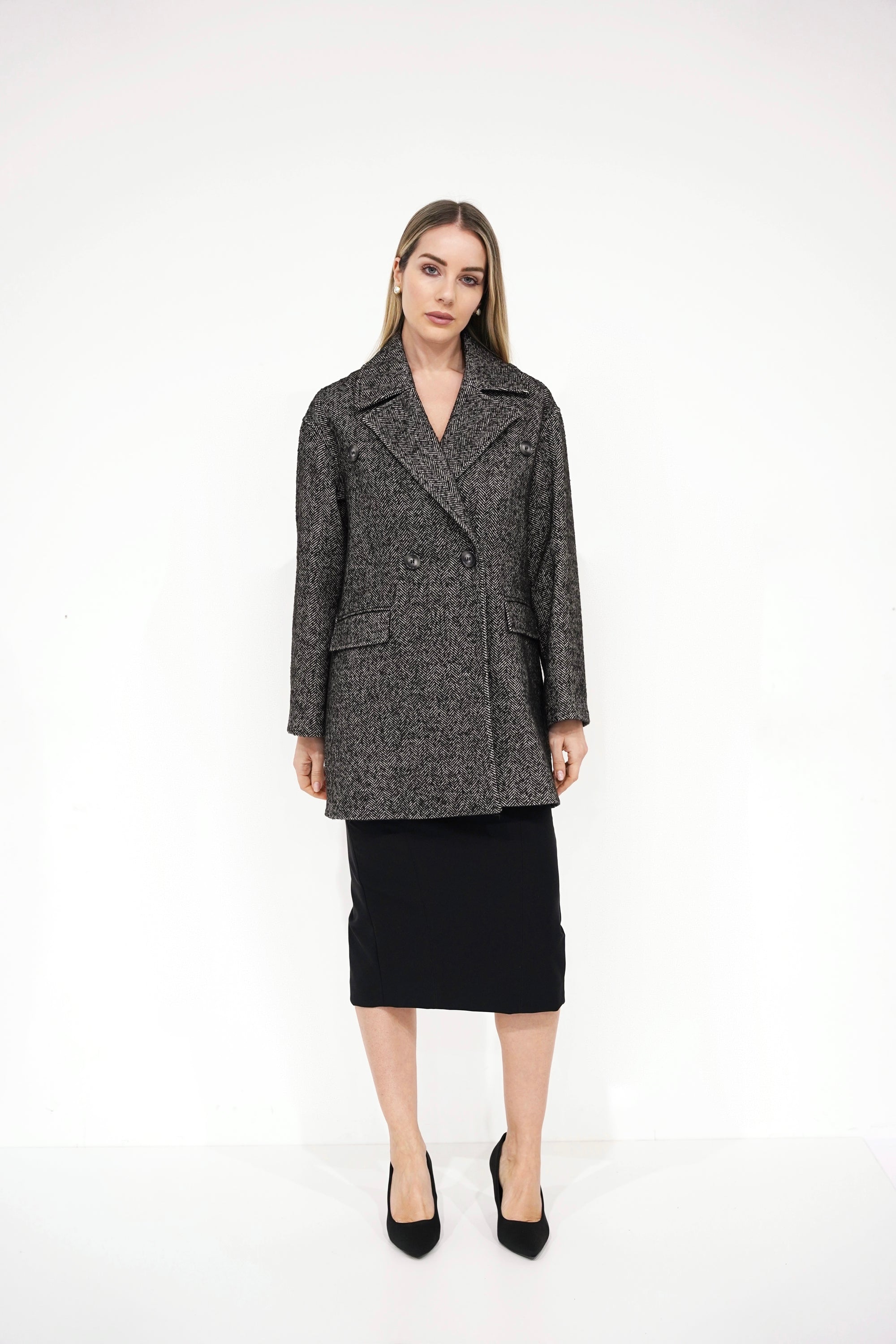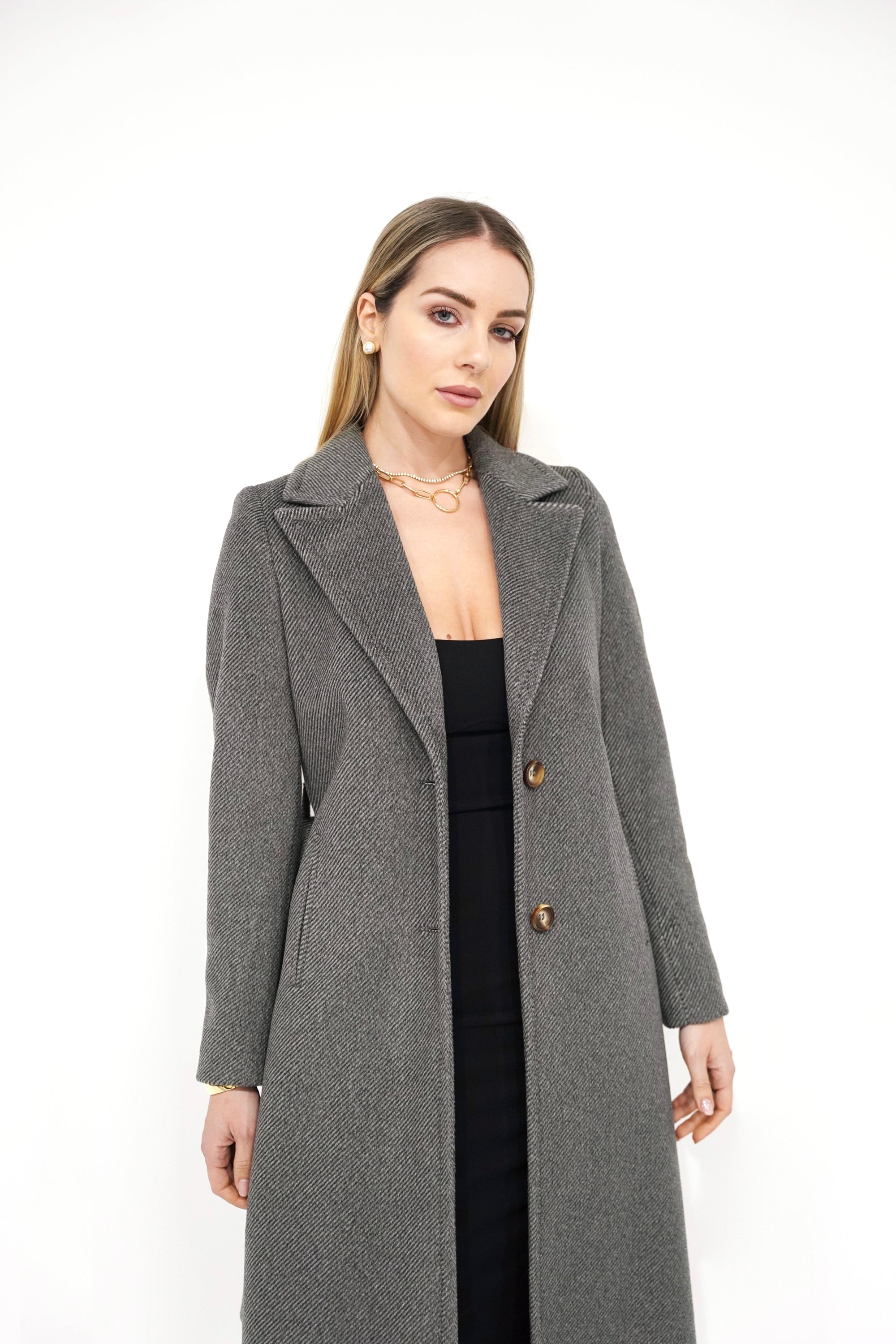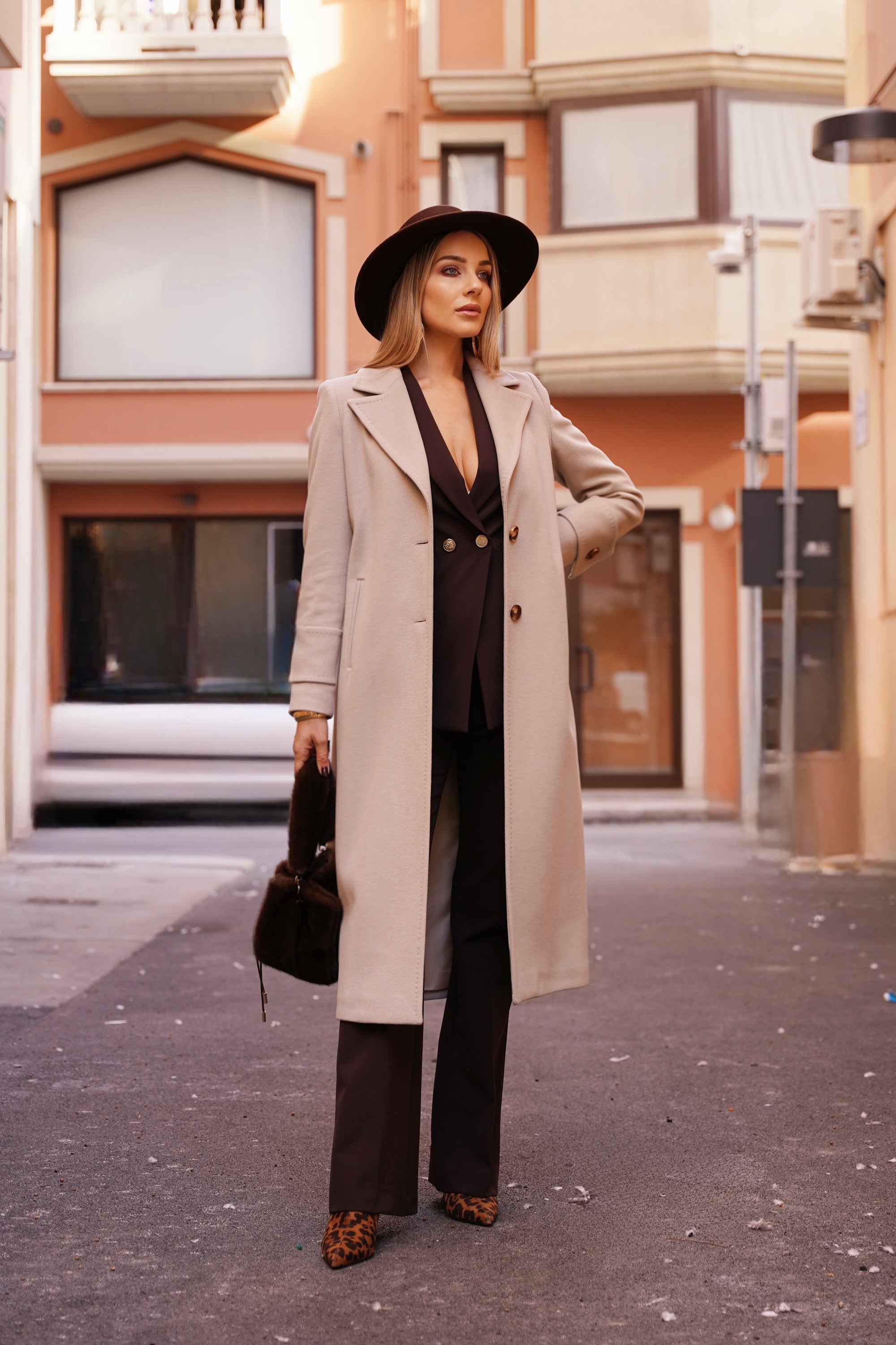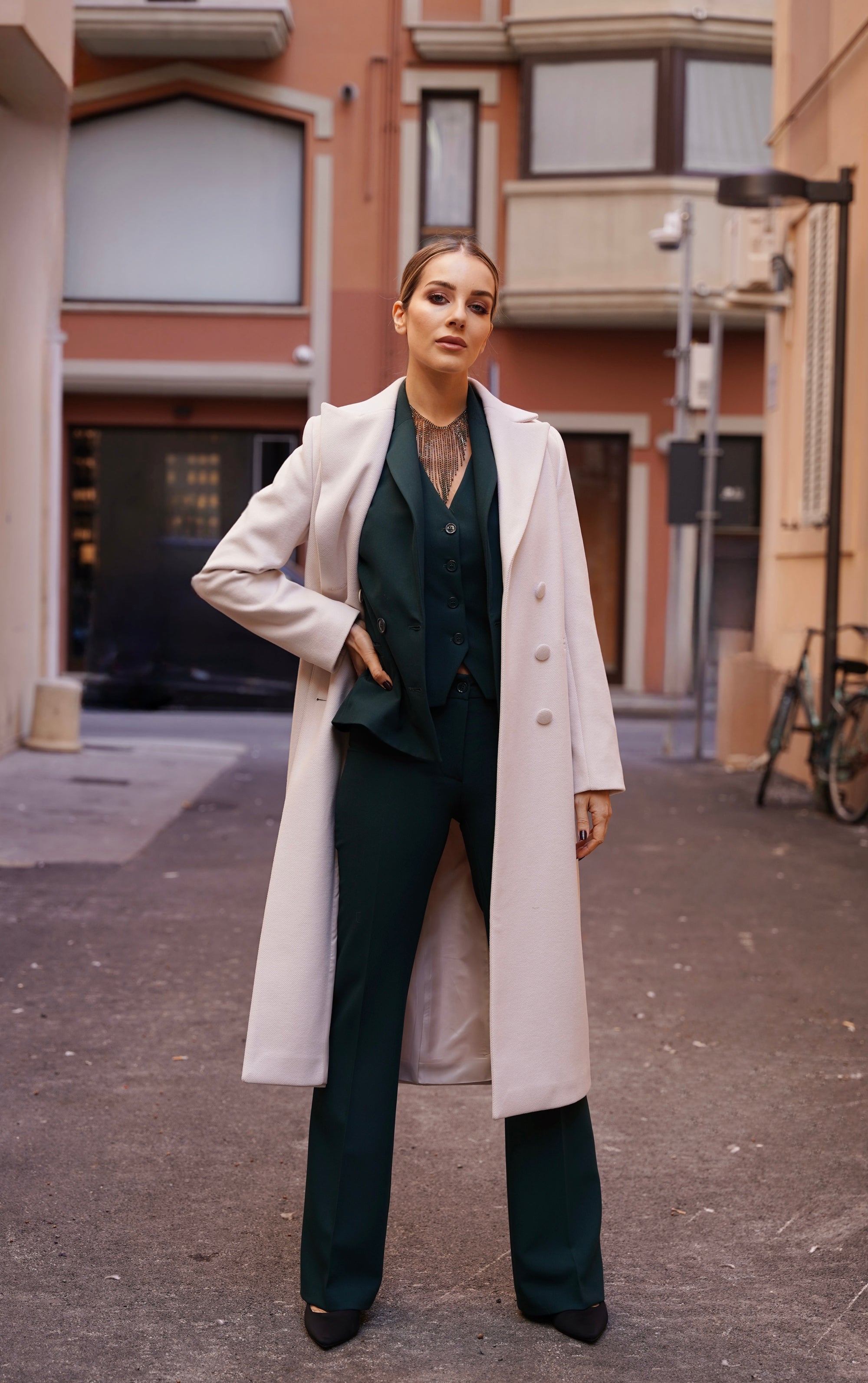 Il cappotto allunga la silhouette, il tailleur la definisce, con accenti decisi che non passano inosservati.