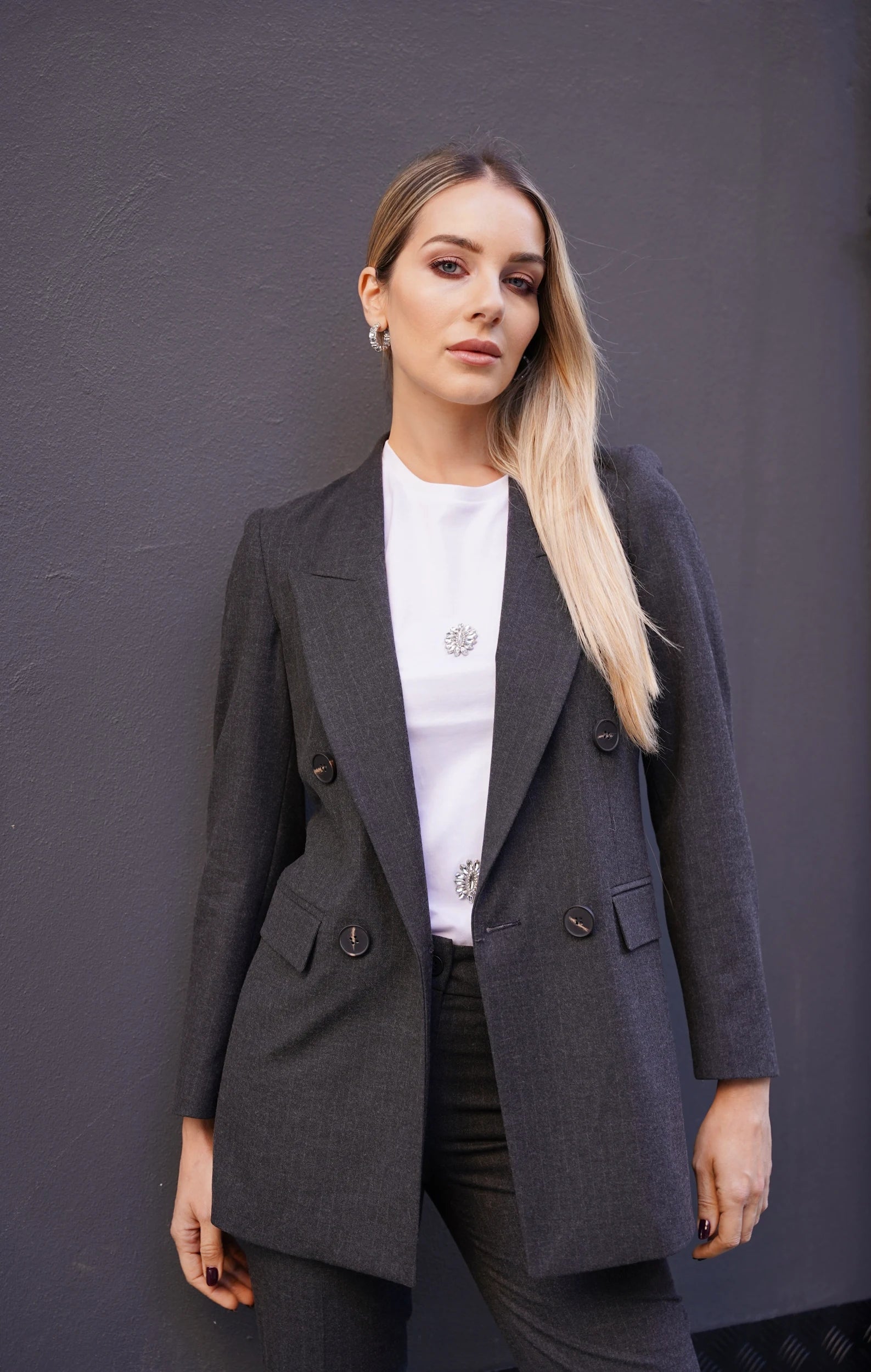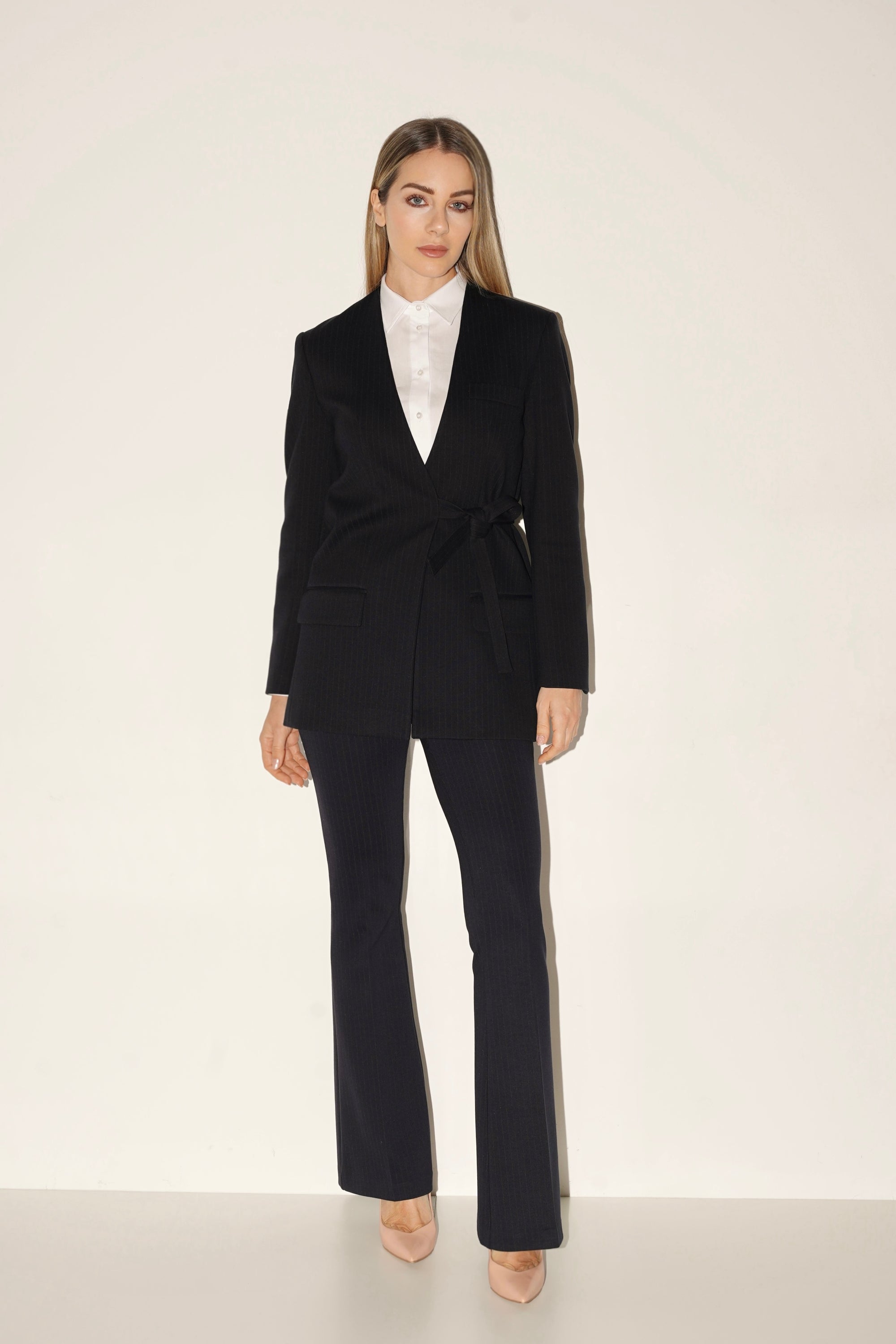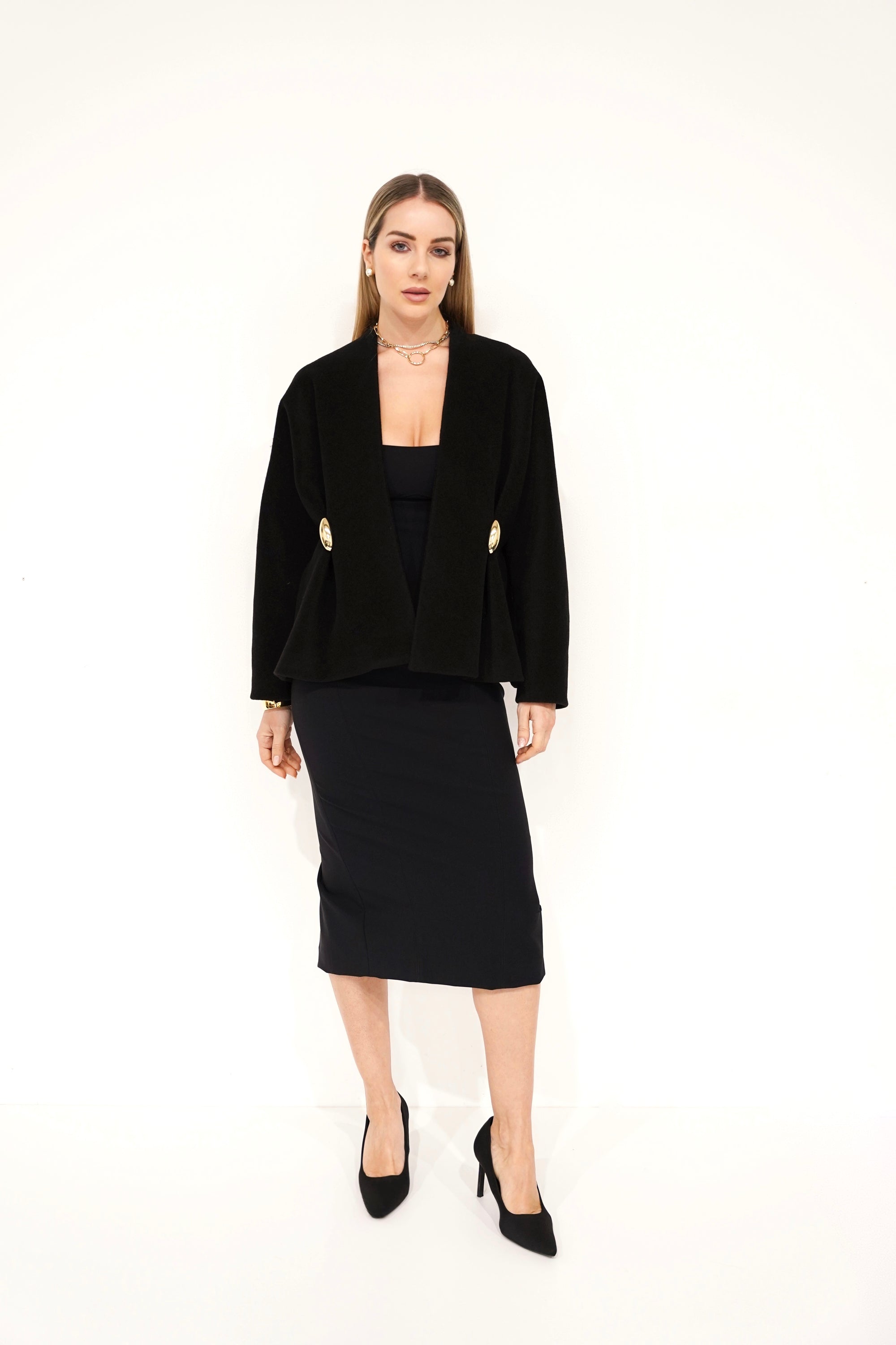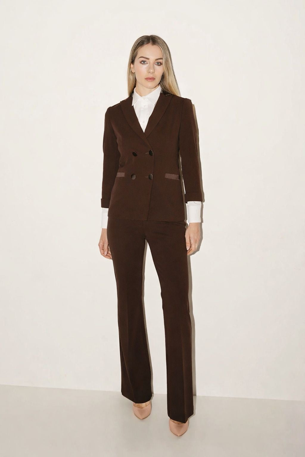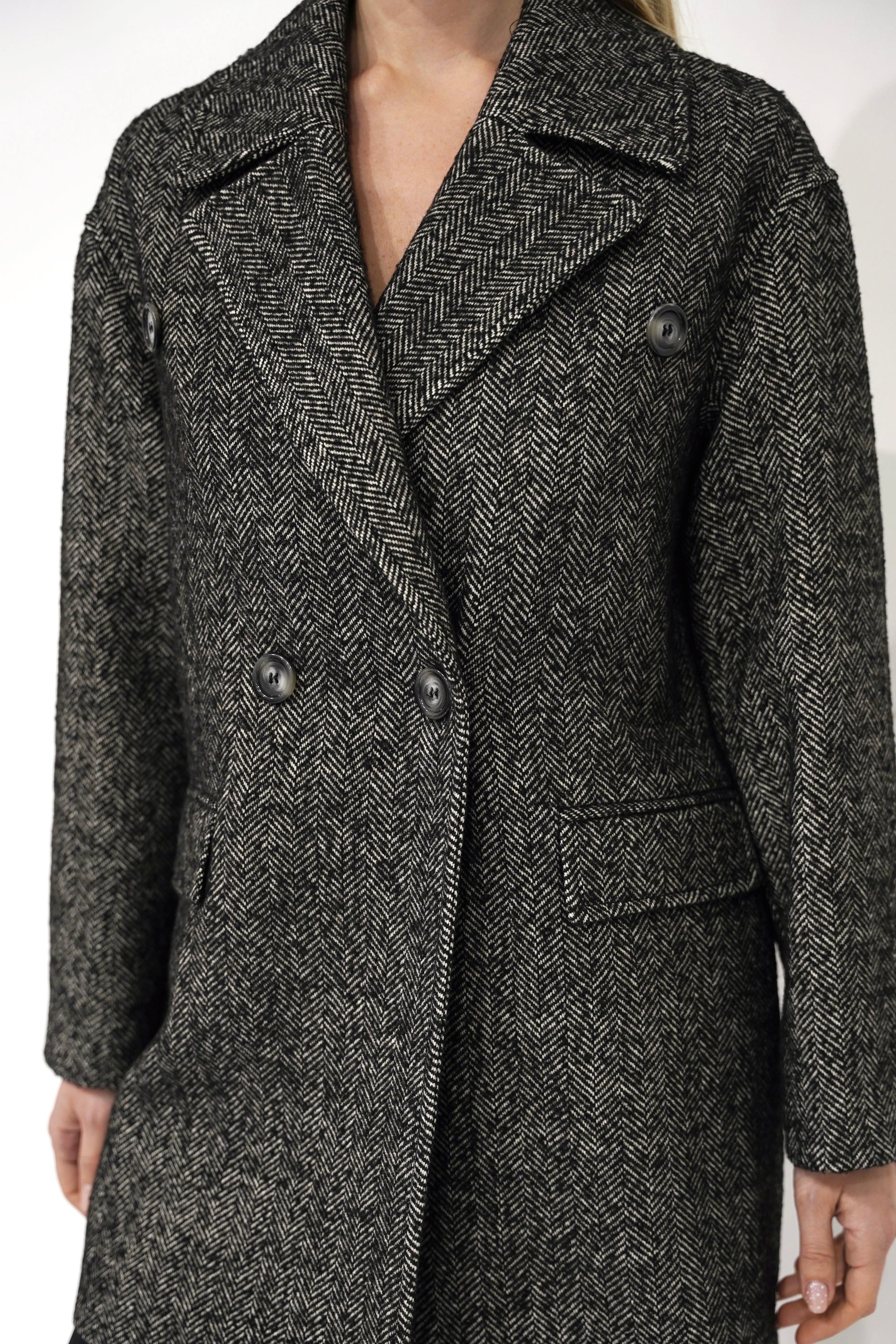 Il cappotto allunga la silhouette, il tailleur la definisce, con accenti decisi che non passano inosservati.