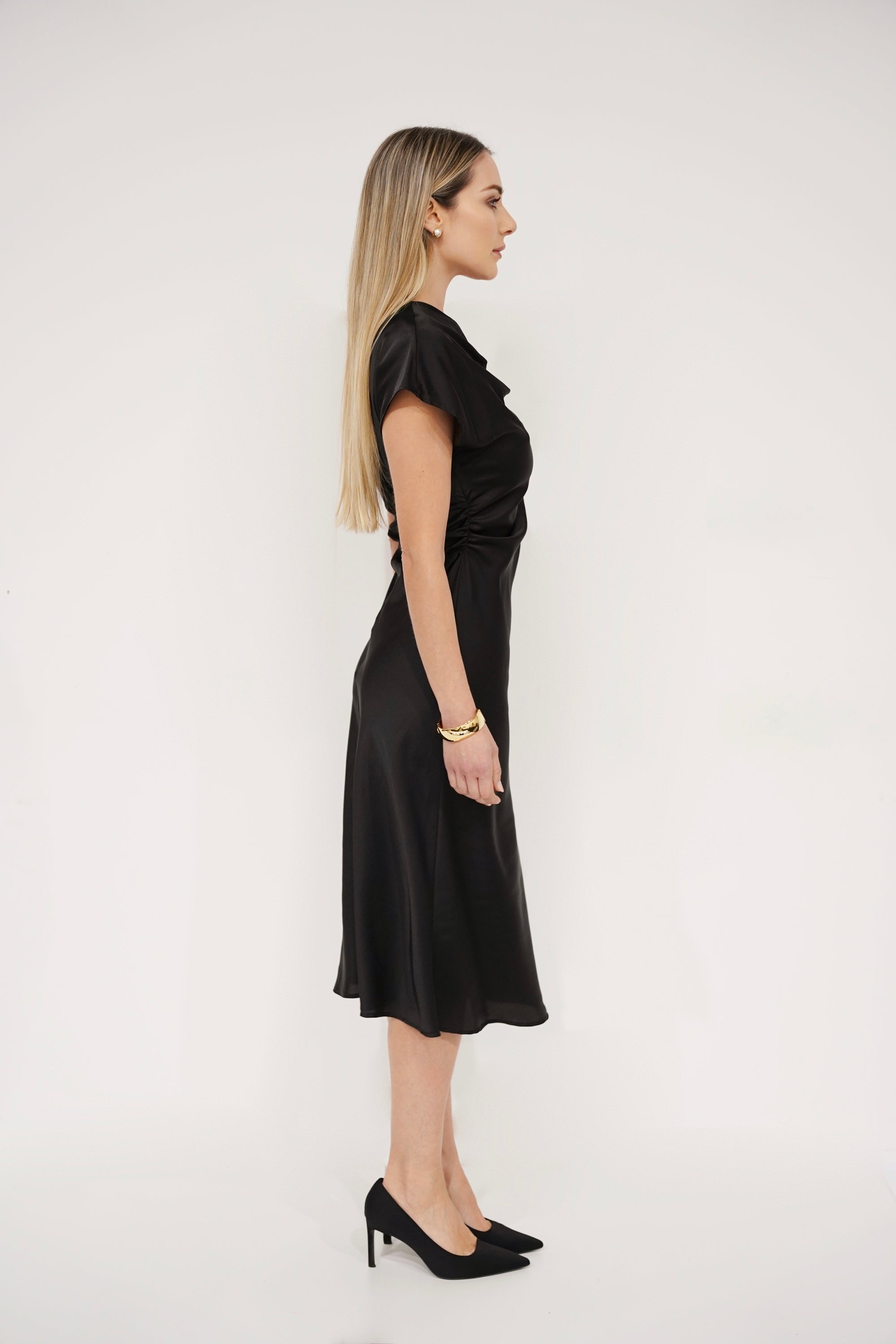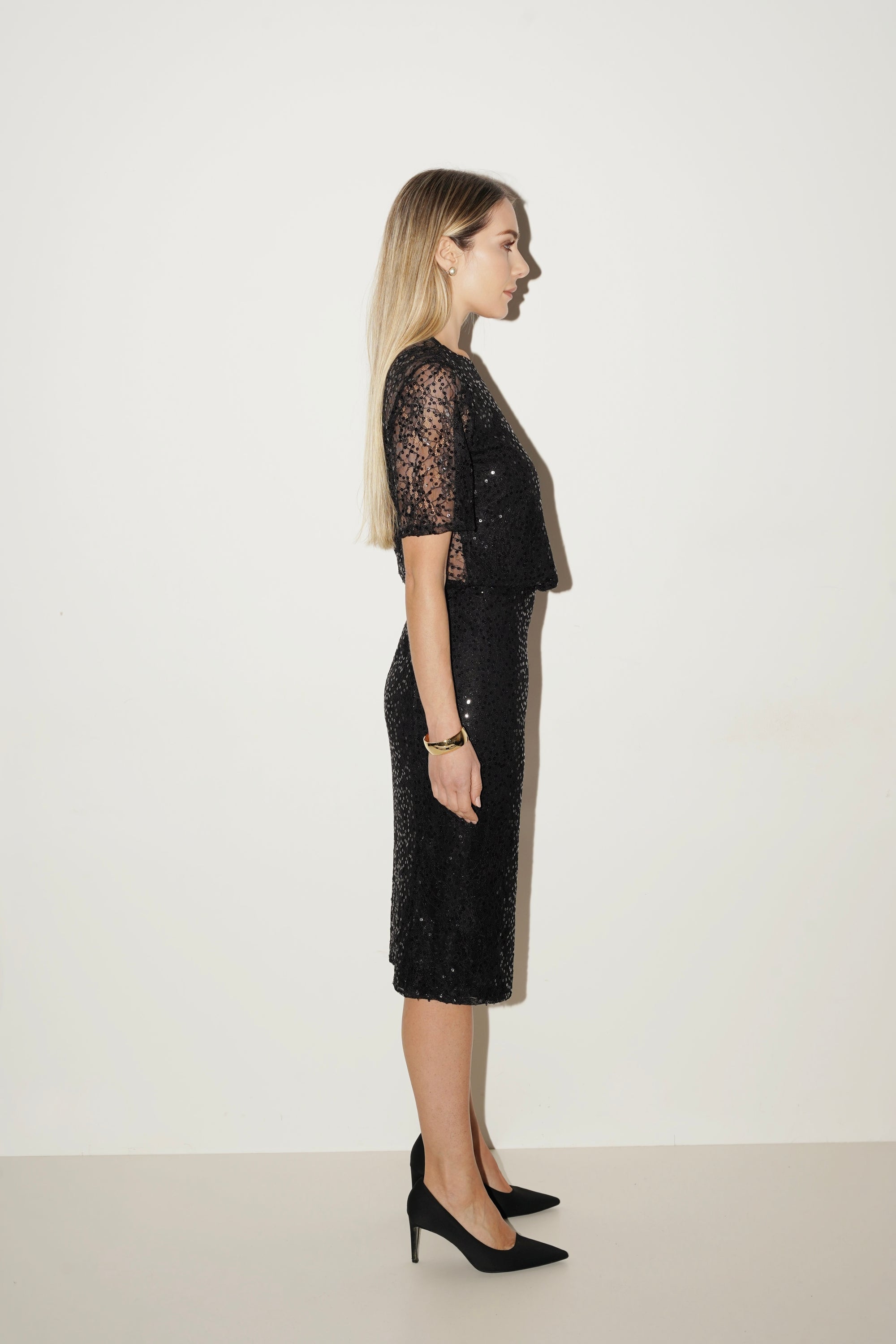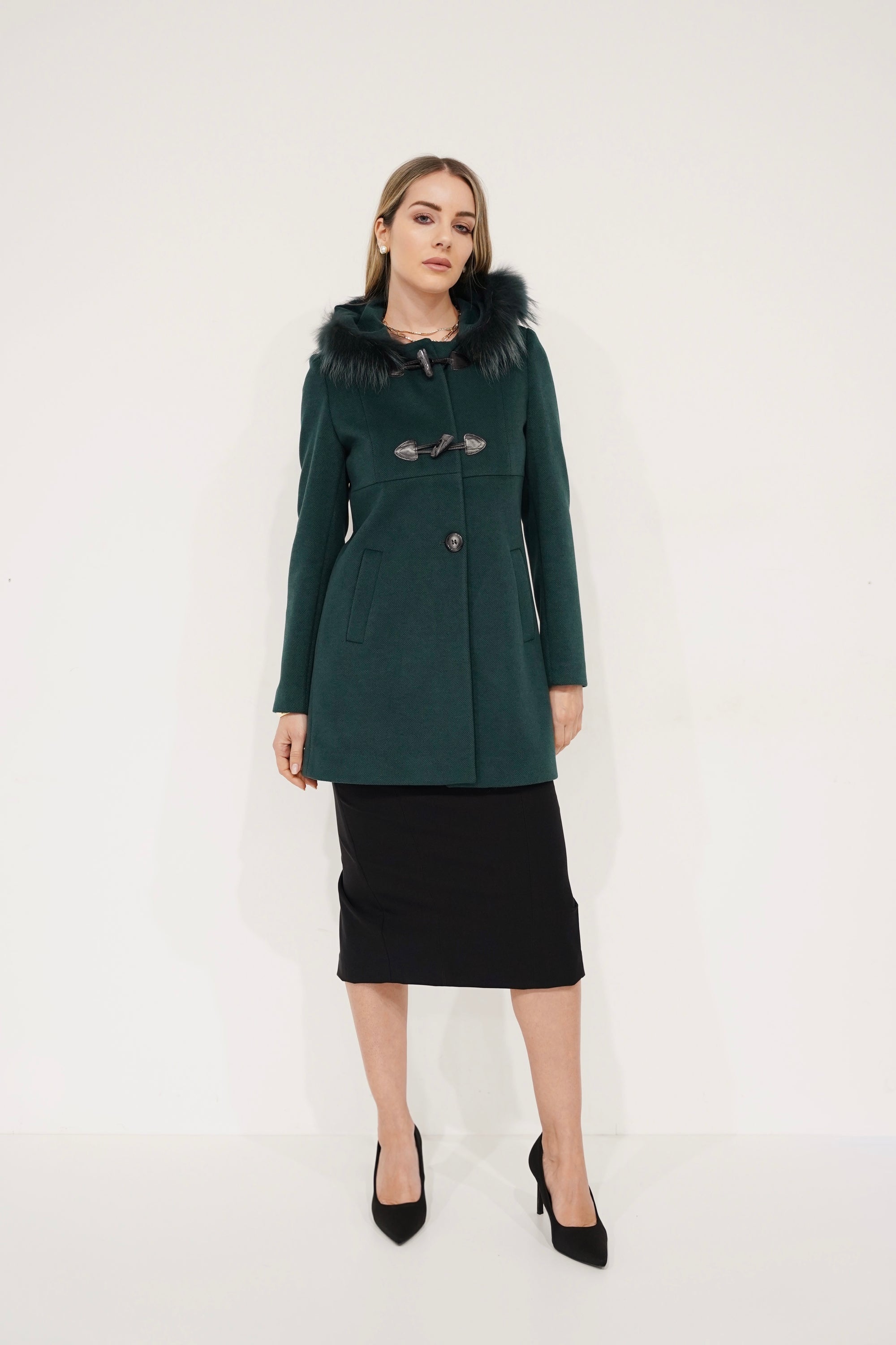 Il verde petrolio scolpisce la silhouette con eleganza naturale e un’allure contemporanea.