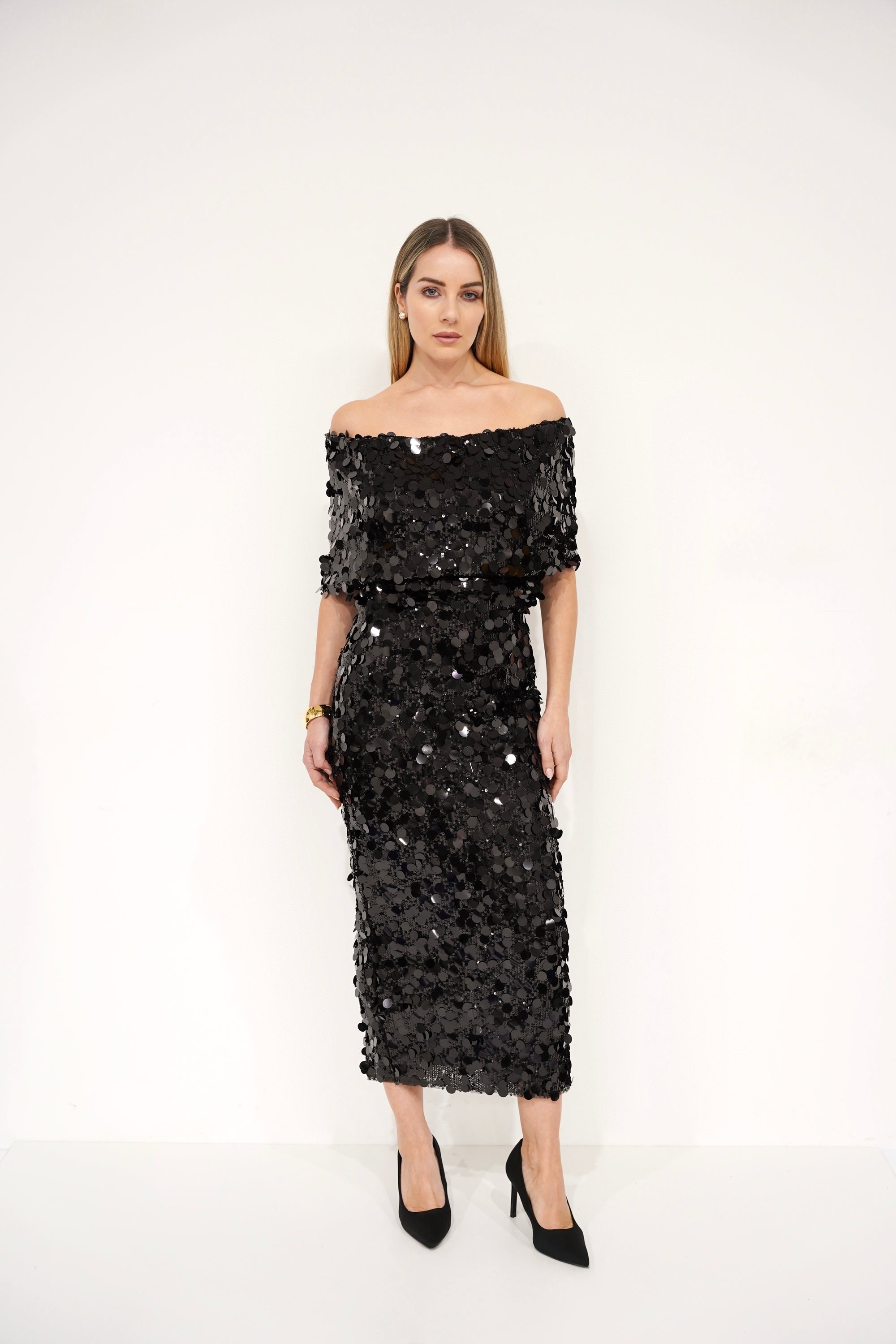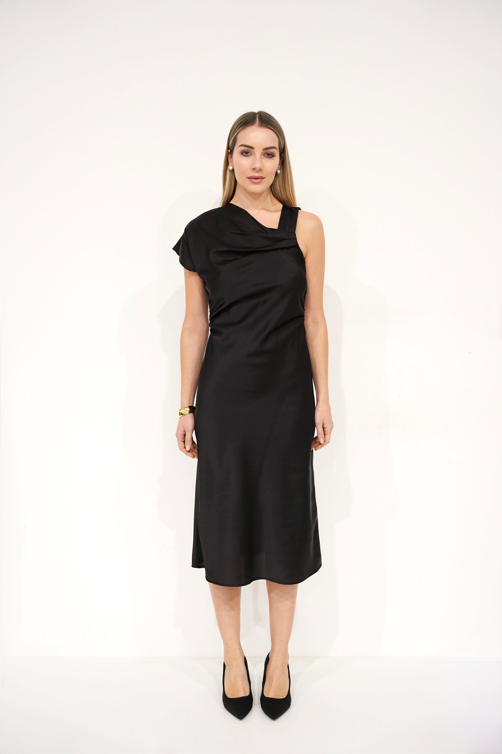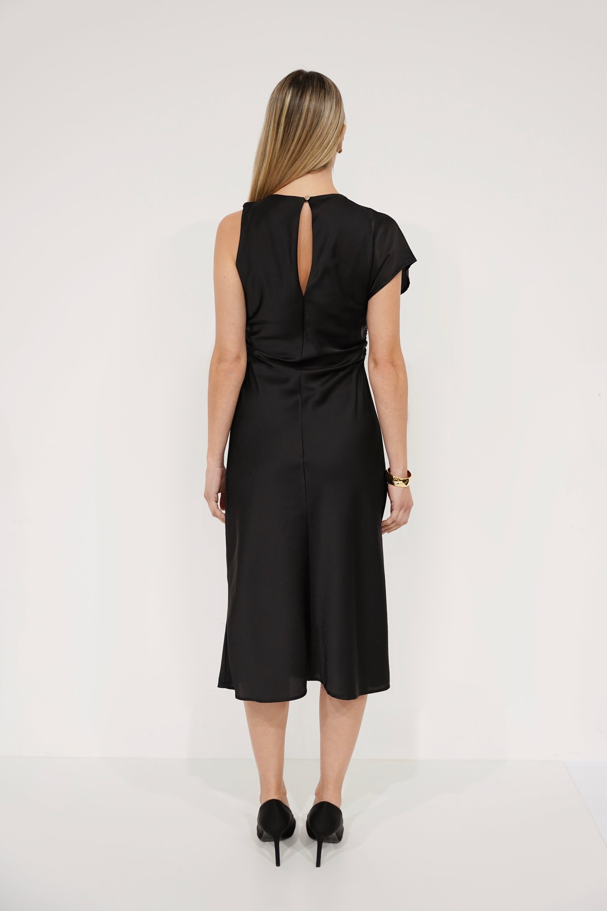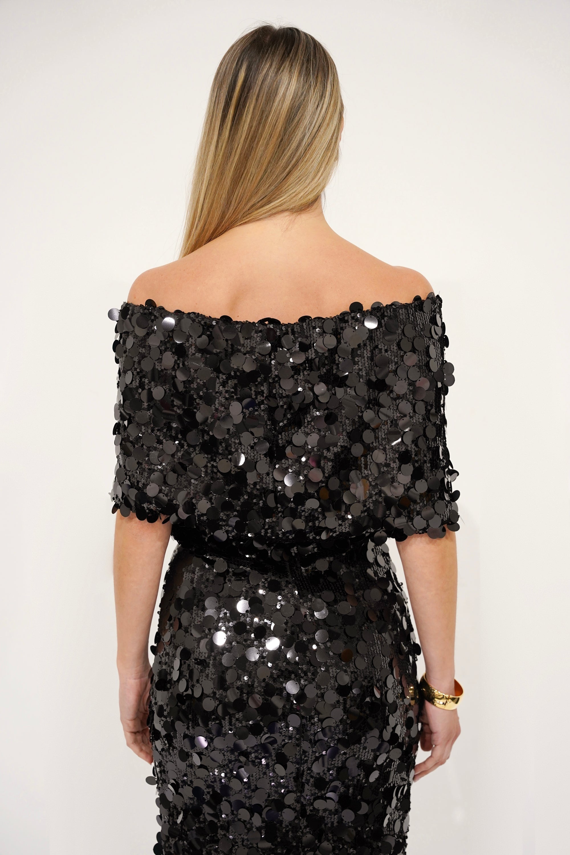 Il verde petrolio scolpisce la silhouette con eleganza naturale e un’allure contemporanea.