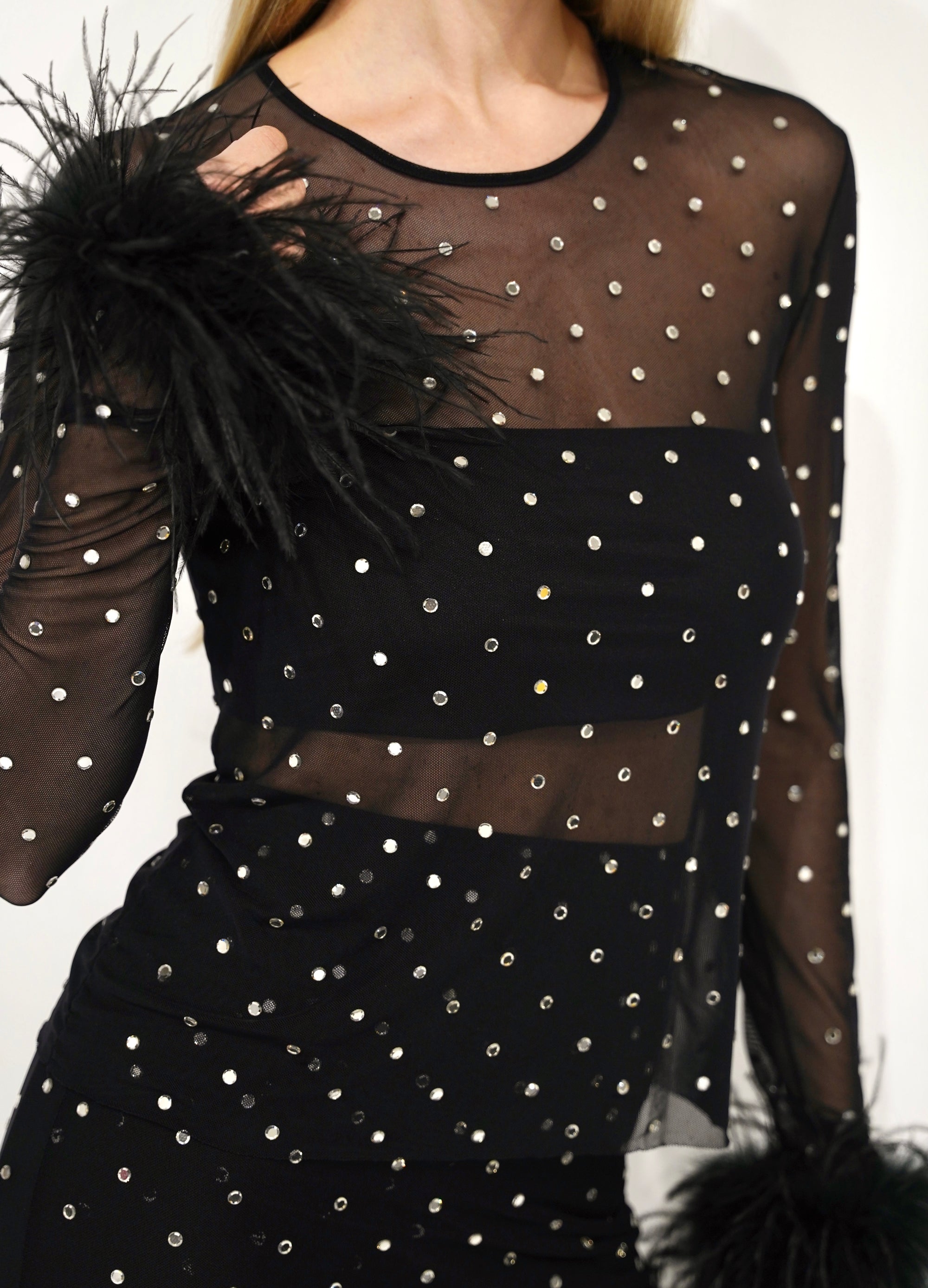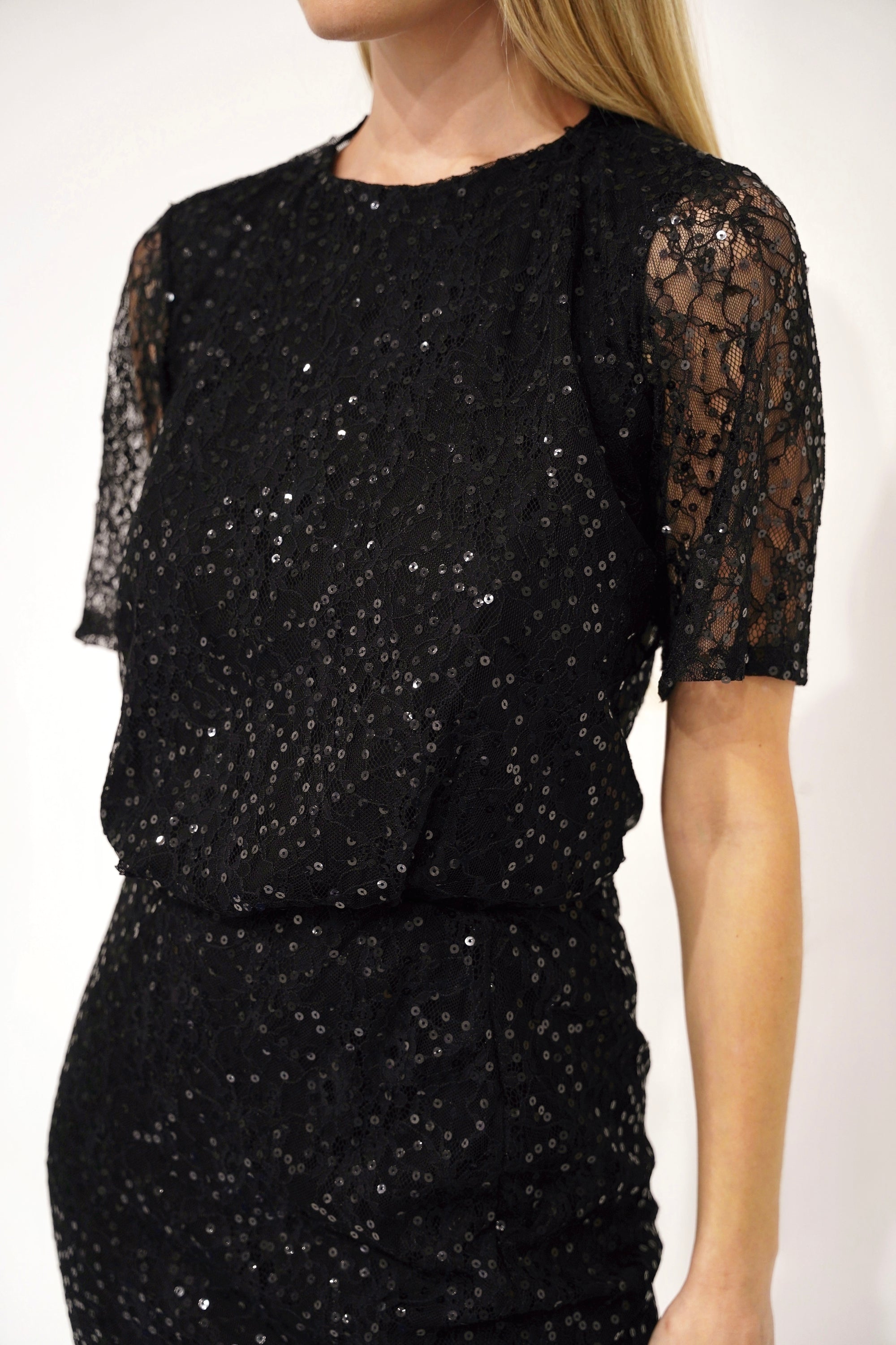 Abito midi off-shoulder in paillettes nere